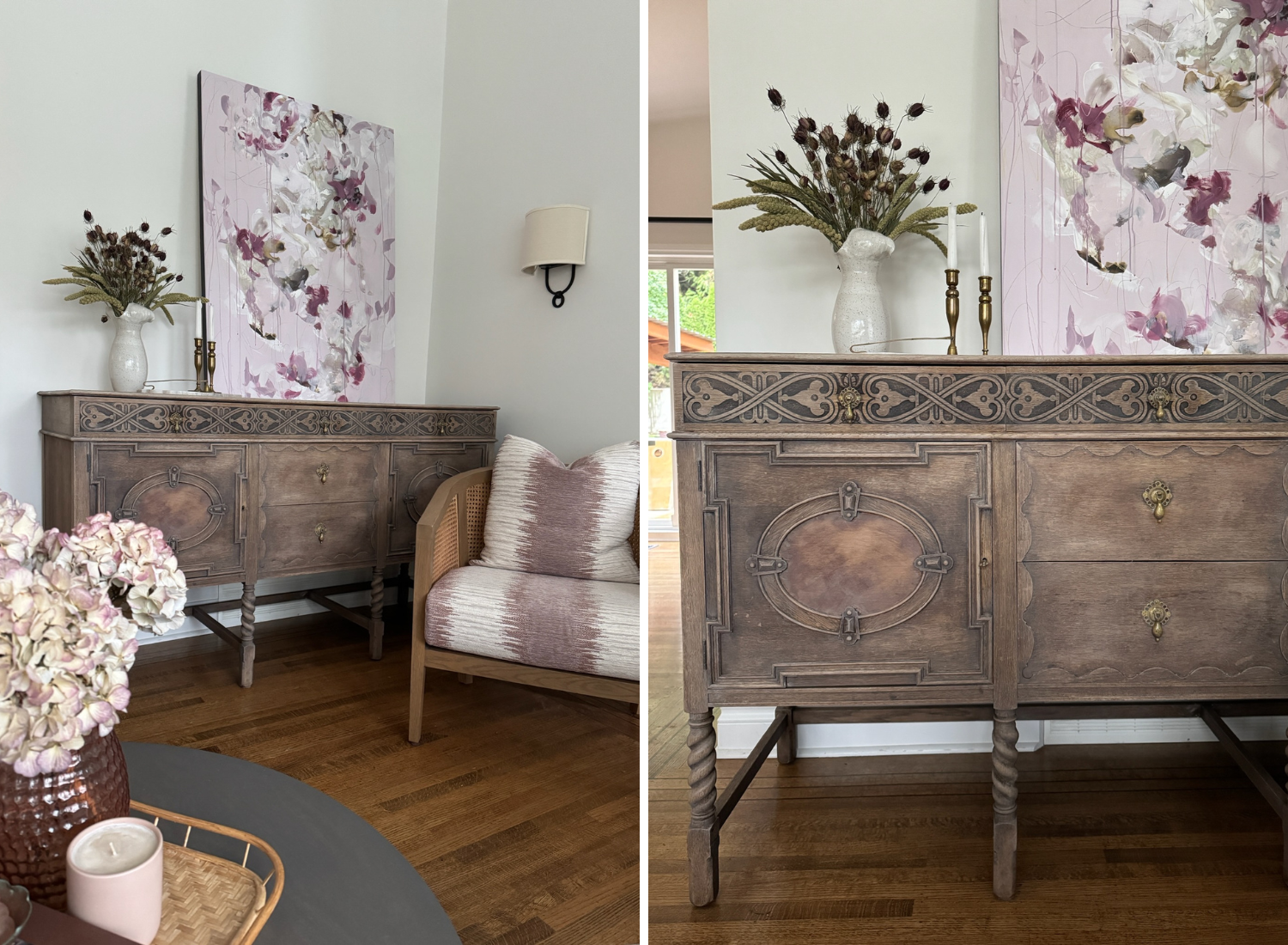 I brought it to Sydney, who stripped and refinished it with her signature care and expertise. The transformation feels both timeless and personal—exactly the kind of livable luxury that makes you feel at home each time you walk into the room. It has quickly become one of my favourite pieces.